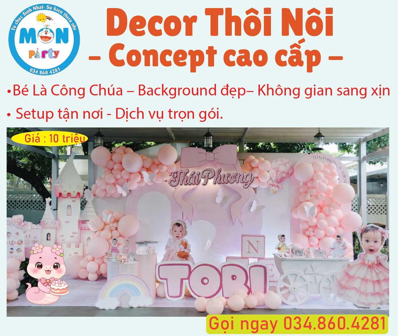Dịch vụ decor backdrop thôi nôi Thủ Đức tại Monparty