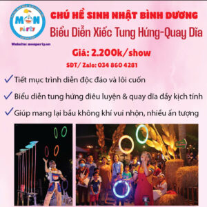 Giá thuê chú hề sinh nhật Bình Dương với nhiều tiết mục hấp các bé trong ngày sinh nhật. Giá đã bao gồm trọn gói biểu diễn và di chuyển.