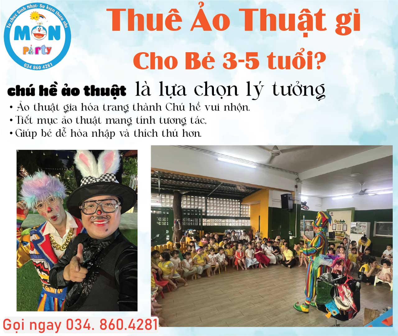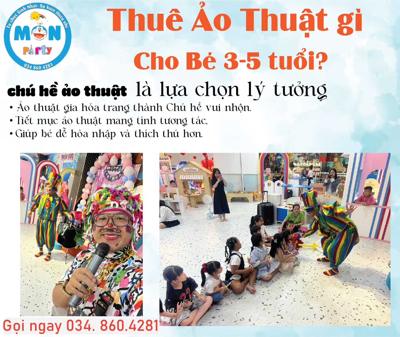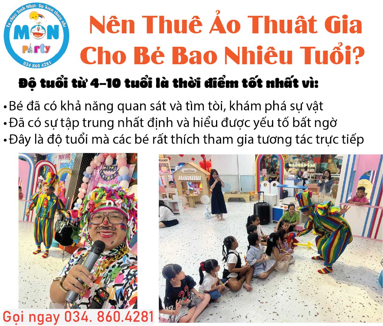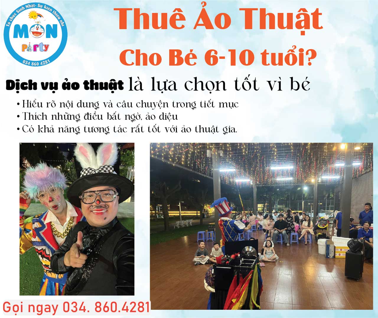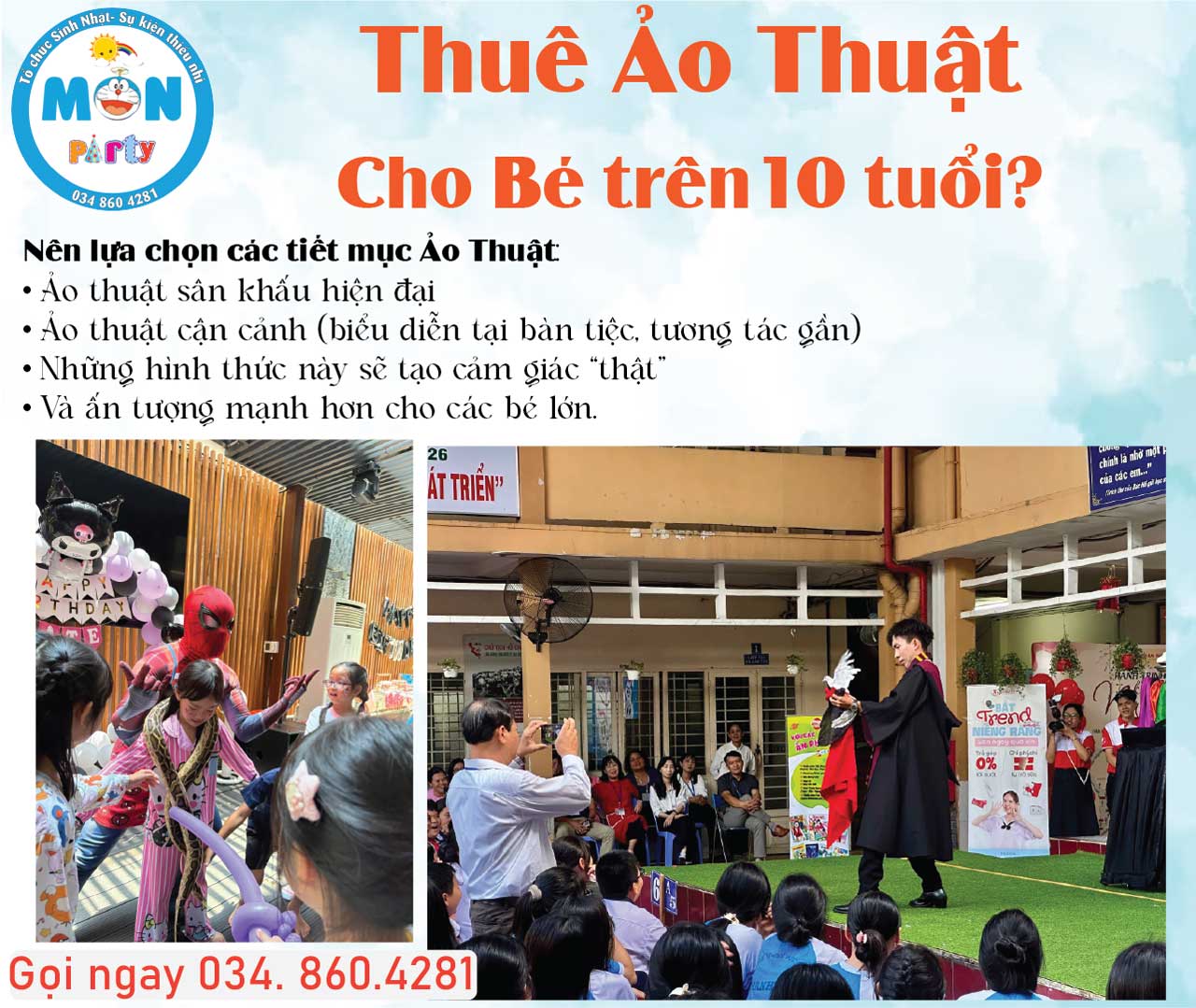 Quý khách có nhu cầu tư vấn thuê ảo thuật gia phù hợp theo độ tuổi, hãy liên hệ ngay với chúng tôi để được hỗ trợ nhanh chóng và chuyên nghiệp.