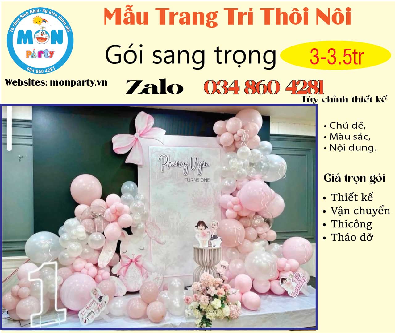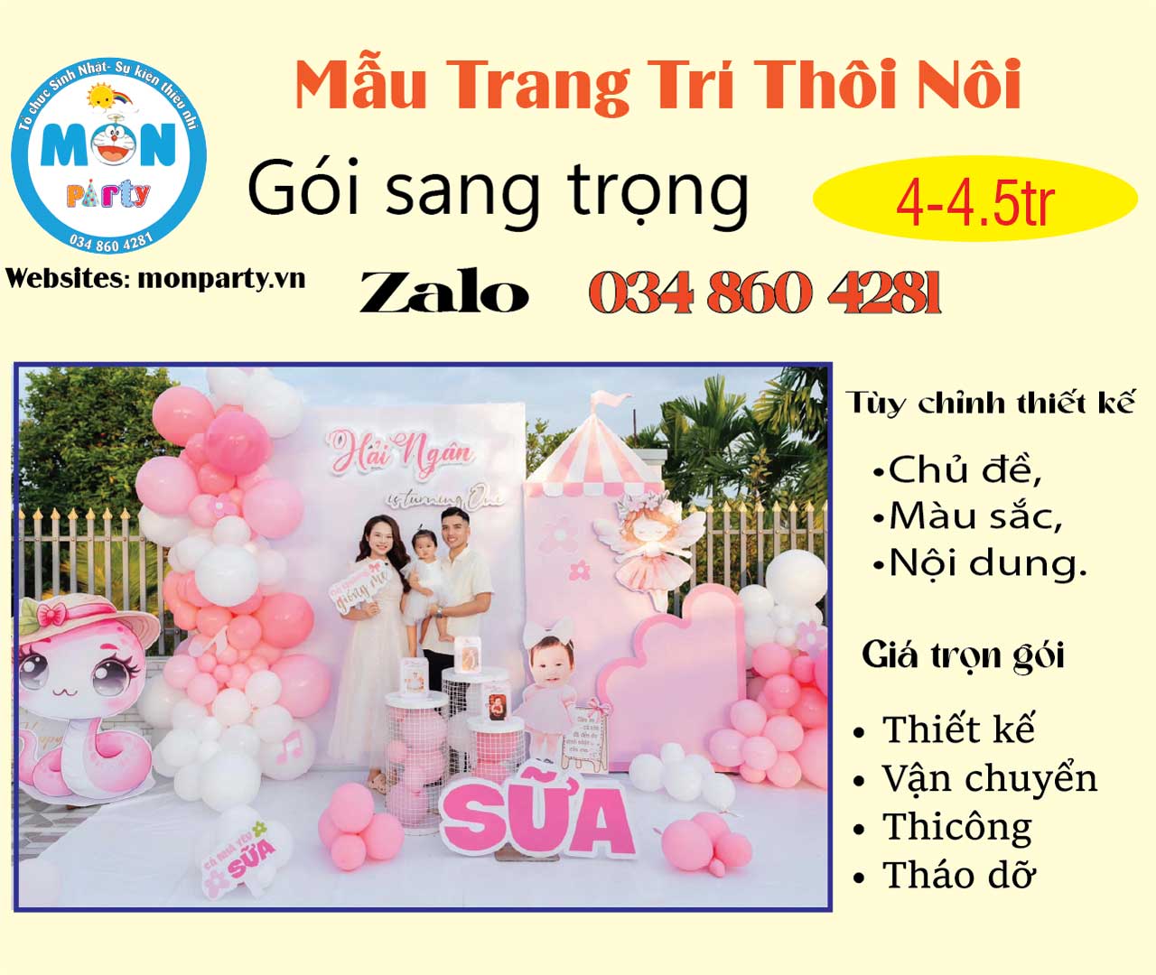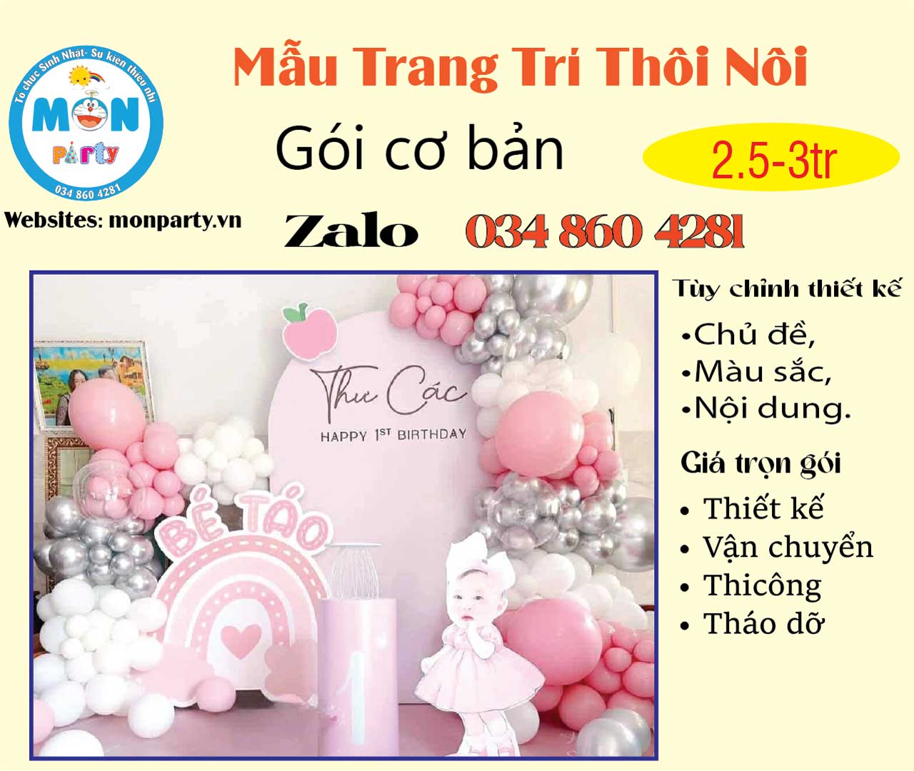 Mon Party chuyên trang trí sinh nhật cho bé. Hân hạnh đồng hành cùng quý khách trong chương trình sự kiện sắp đến.