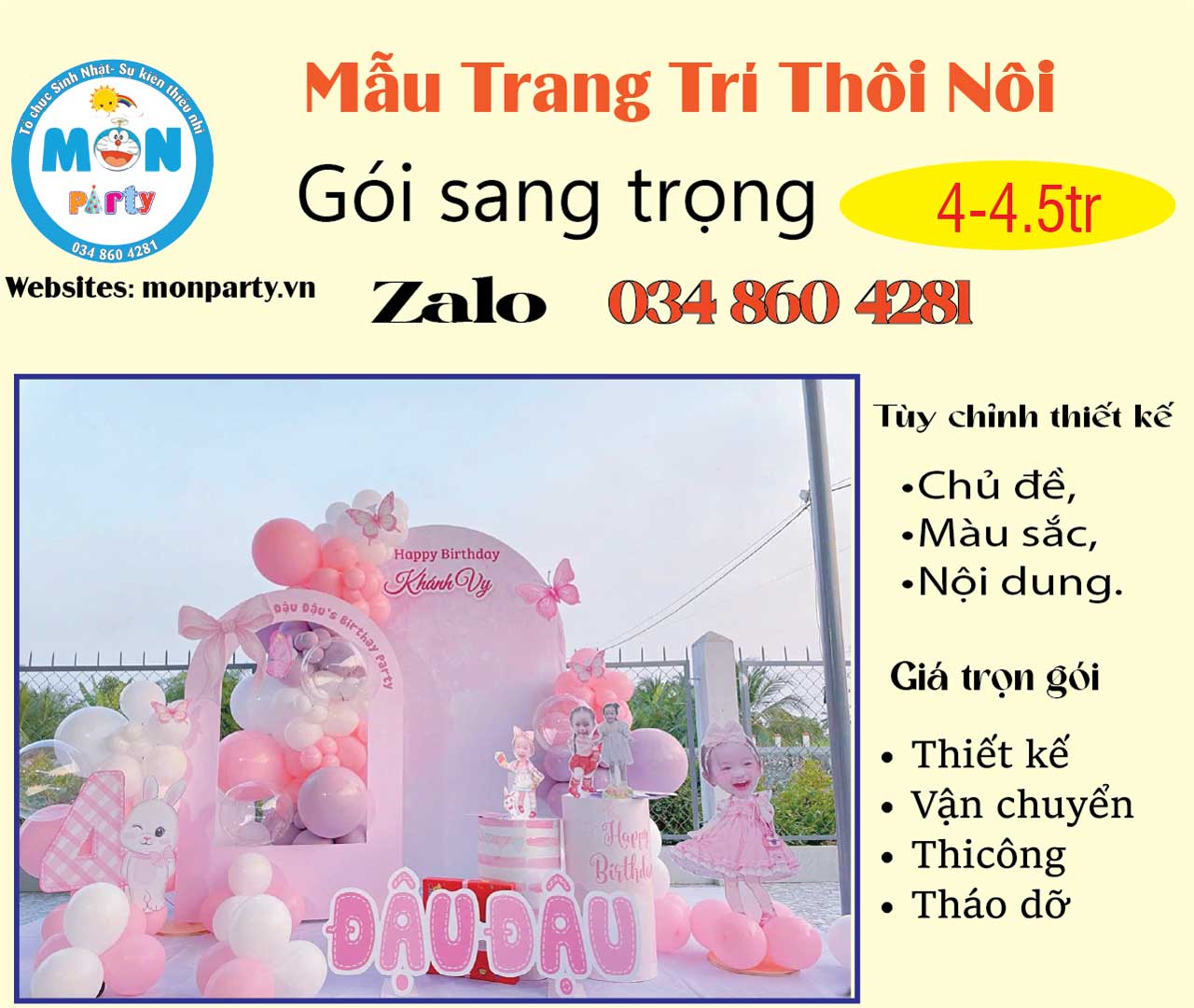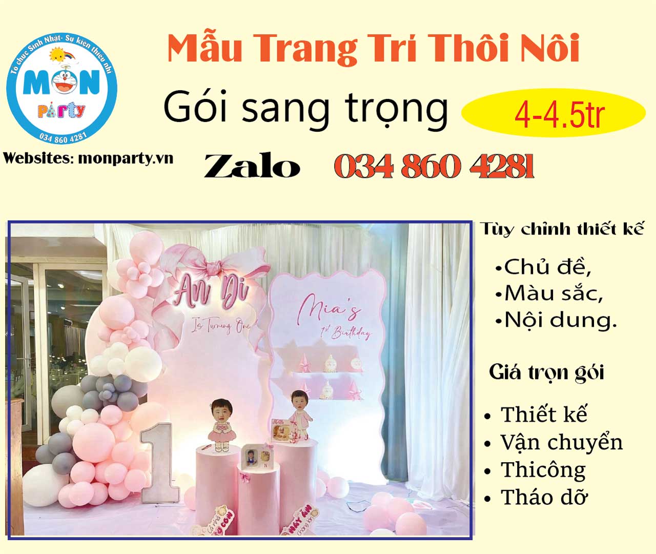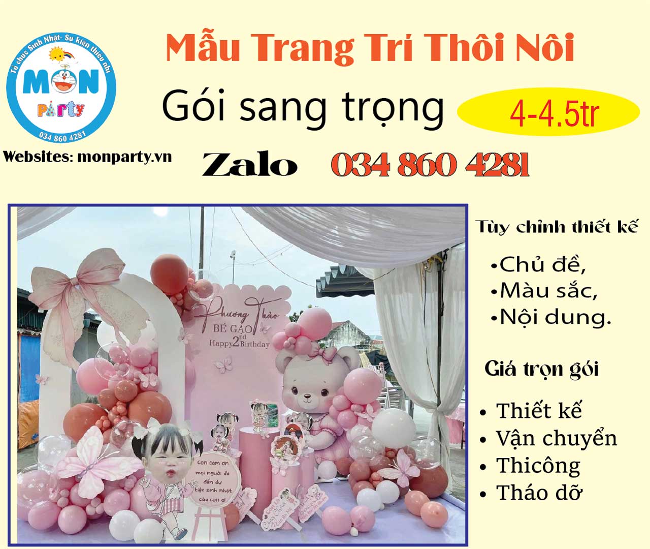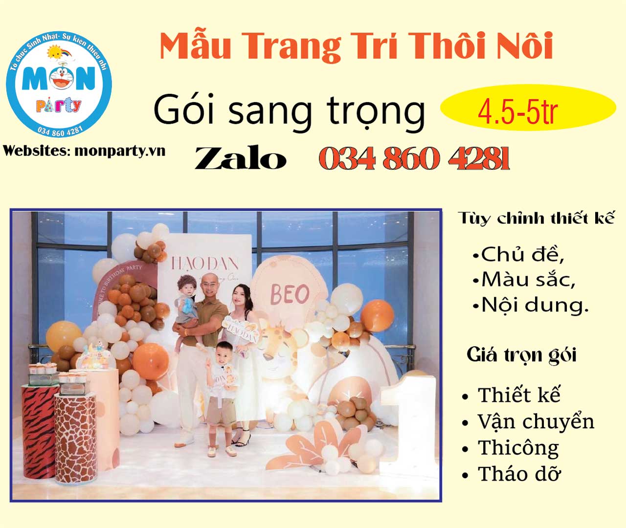 Mon Party chuyên trang trí sinh nhật cho bé. Hân hạnh đồng hành cùng quý khách trong chương trình sự kiện sắp đến.