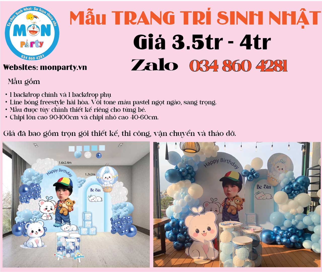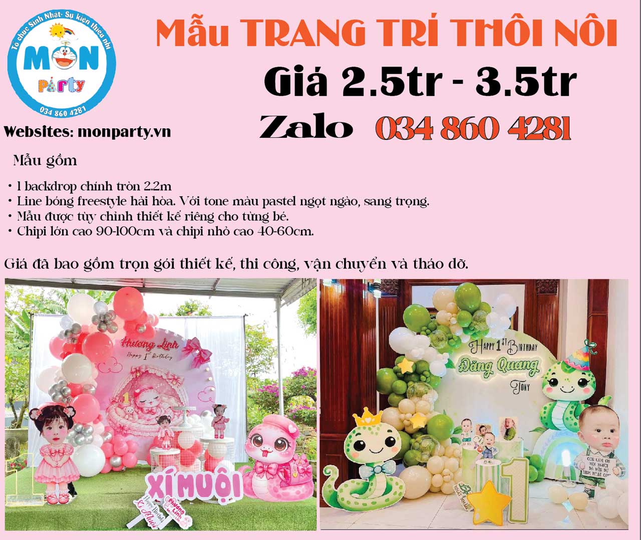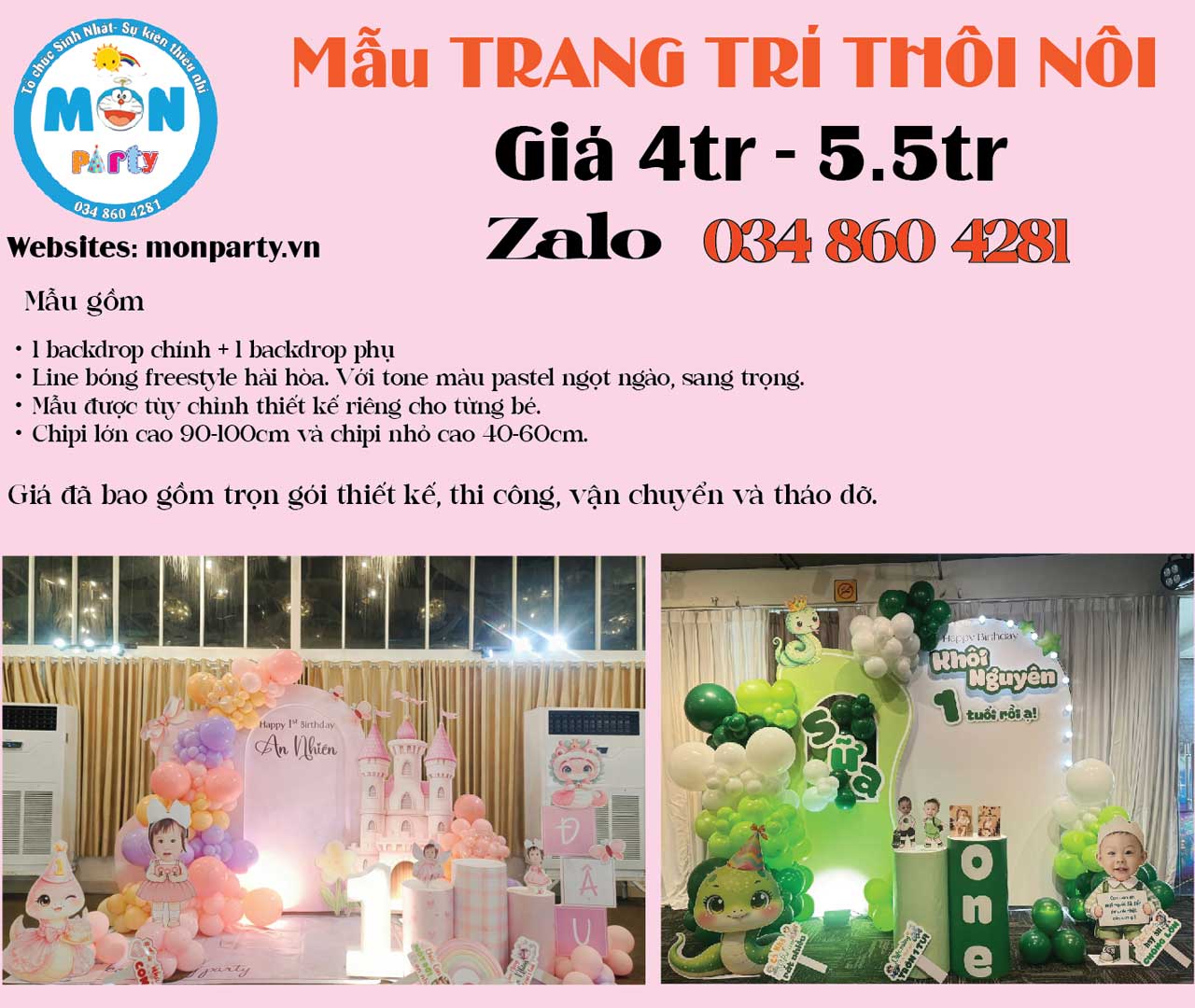 Báo giá dịch vụ trang trí thôi nôi HCM tại Monparty